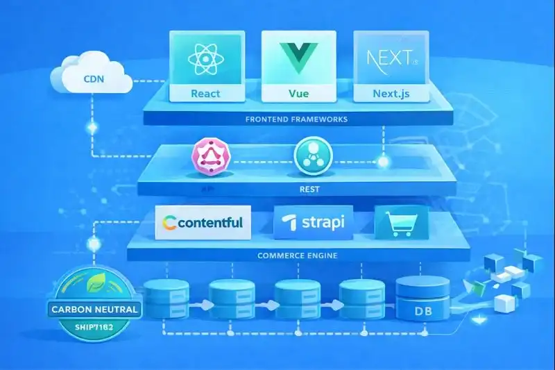Implementing headless requires strategic selection of back-end commerce engine, front-end framework, and supporting infrastructure.