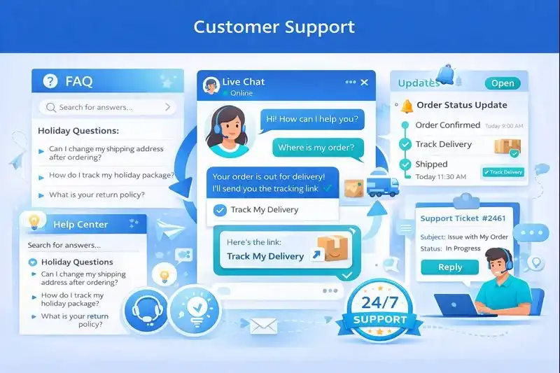 - FAQs: Create a page with frequently asked questions about holiday shopping, including delivery, returns, and holiday promo codes.