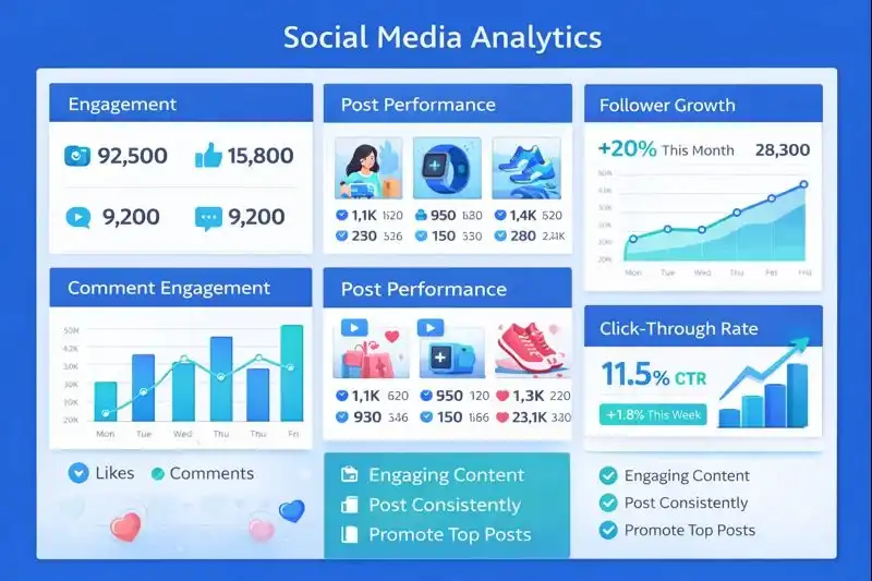 ☐ Which platform drove most revenue? (Allocate more budget) ☐ Which content type performed best? (Reels vs Stories vs Feed) ☐ What posting times got highest engagement? (Adjust schedule) ☐ Which products got most social traffic? (Feature more often) ☐ What was blended ROAS across all campaigns? (Above 4x?) ☐ How many new customers from social? (CAC acceptable?) ☐ Follower growth rate? (10% monthly is healthy)