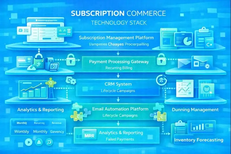 Connect subscription platform with: E-commerce platform (Shopify, WooCommerce, custom), email marketing (Klaviyo for automated flows), customer service (Zendesk, Gorgias for support ticket context), inventory management (real-time stock levels prevent overselling), accounting (QuickBooks, Xero for revenue recognition).