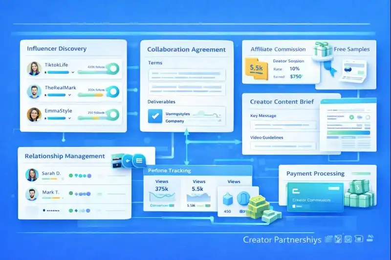 - Customer Acquisition Cost (CAC): Including creator fees, ad spend, and promotional discounts (target: CAC < 30% of AOV)