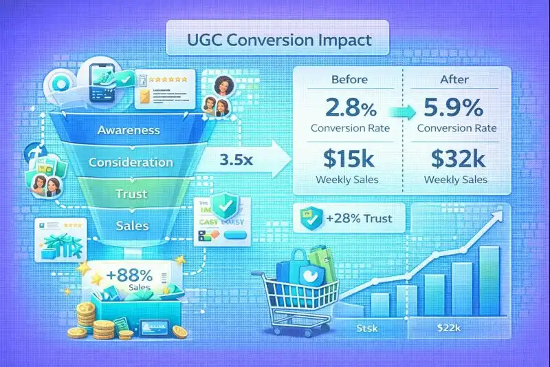 - UGC reduces CAC (Customer Acquisition Cost) by 30-50%