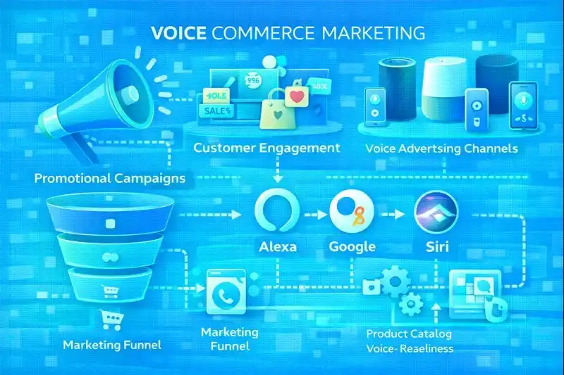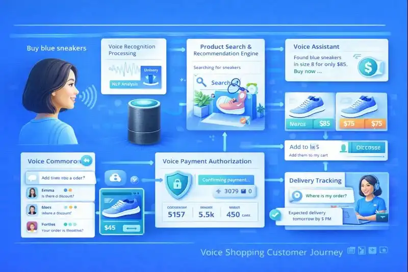 Voice commerce enables customers to search, browse, and purchase products using voice commands through smart speakers (Amazon Echo, Google Home) and voice assistants (Siri, Alexa, Google Assistant) on smartphones and other devices.